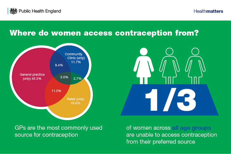 Women access contraception from a range of sources, with preference for source and method of contraception varying by both age and deprivation. Whilst GPs are the most popular source used by 6 out of 10 women, sexual health clinics and community clinics are also commonly used, particularly by younger and more disadvantaged populations.