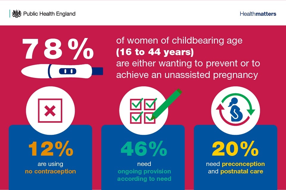 Women make up 51% of England’s population. Of these, more than three quarters at any one time want to either prevent or achieve pregnancy. Contraception and preconception care are therefore a day-to-day reality for the vast majority of women for most of their reproductive years. As such, they should be considered as 2 sides of the same coin, rather than preconception care only being considered at the time of trying to conceive.