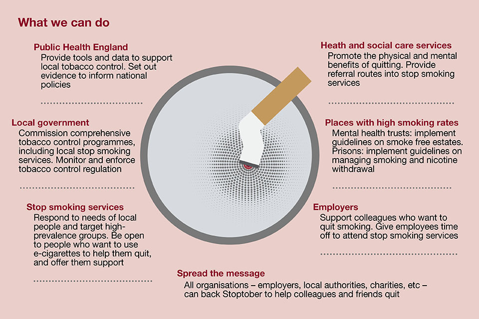 PHE also provides support through products, such as apps, text and email programmes and packs from Stoptober and Smokefree to help people quit.
