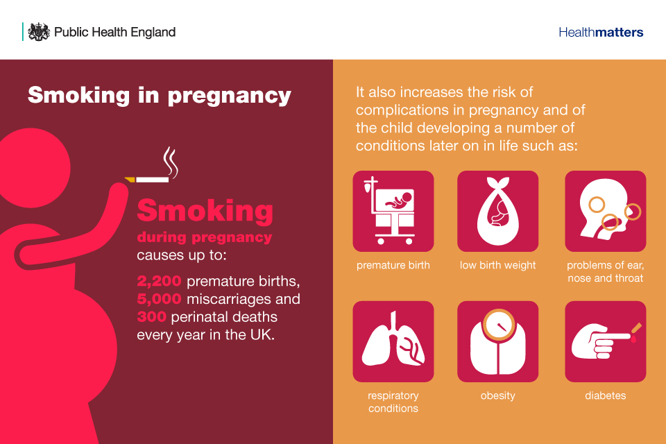 - mothers in routine and manual occupations are 5 times more likely to have smoked throughout pregnancy compared to women in managerial and professional occupations