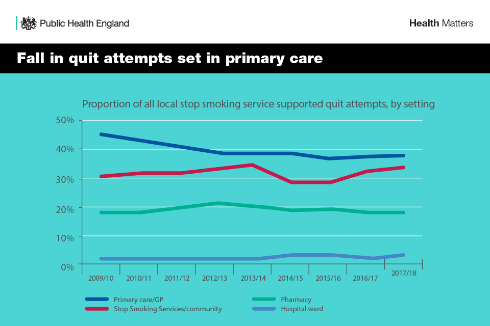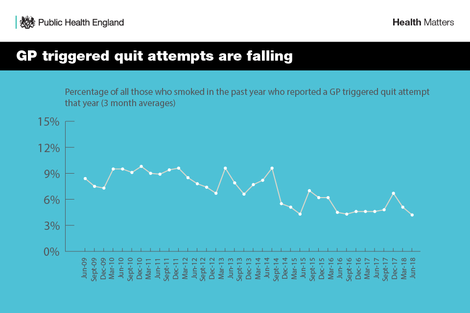 As a matter of routine, they should make every contact count and identify smokers and offer smoking cessation interventions. It is, therefore concerning that the number of smokers receiving an offer of support from in primary care has been falling steadily for a number of years.