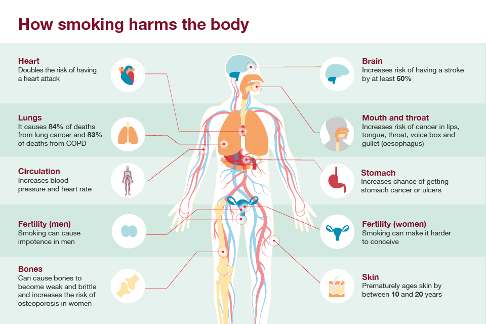Infographic showing how smoking harms the body.