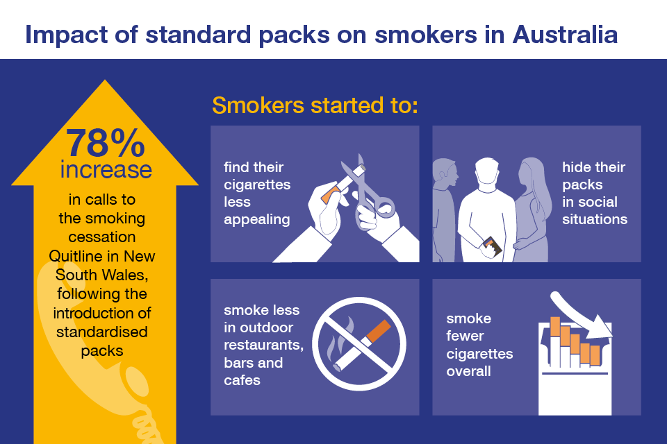 Infographic showing the impact of standard packs on smokers in Australia.