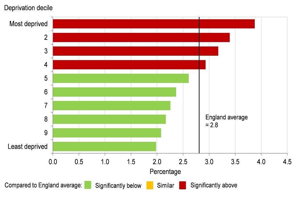 *deprivation deciles based on groups of lower super output areas in England (Index of Multiple Deprivation 2015).