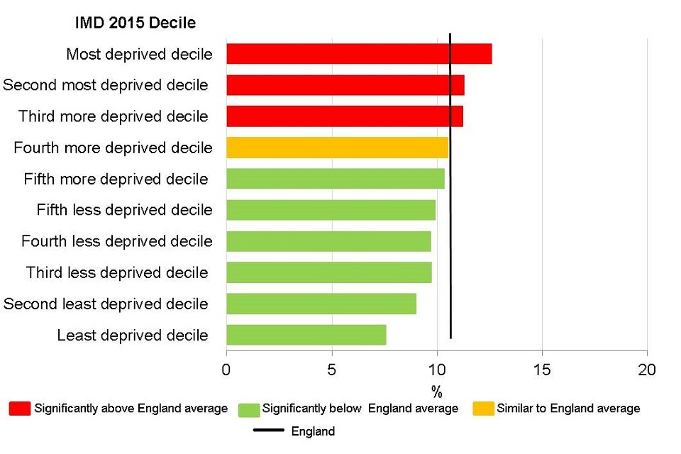 Note: IMD 2015 deprivation deciles are based on district/unitary authority deciles[footnote 14].