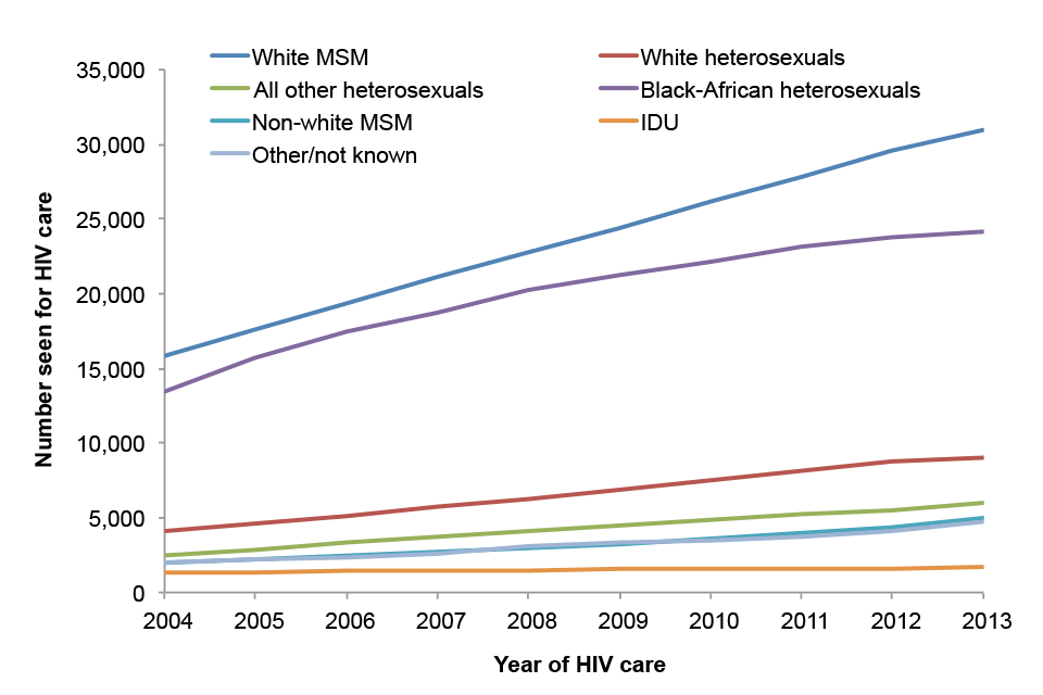 Persons seen for HIV care by prevention group and ethnicity: United Kingdom, 2004–2013