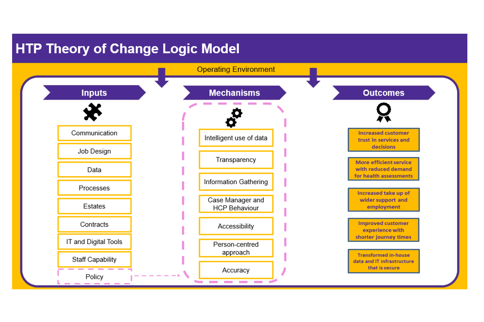 - the context, influencing factors and levers which relate to the outcomes of the HTP as set out in the strategic outcomes, ToC and Programme business case