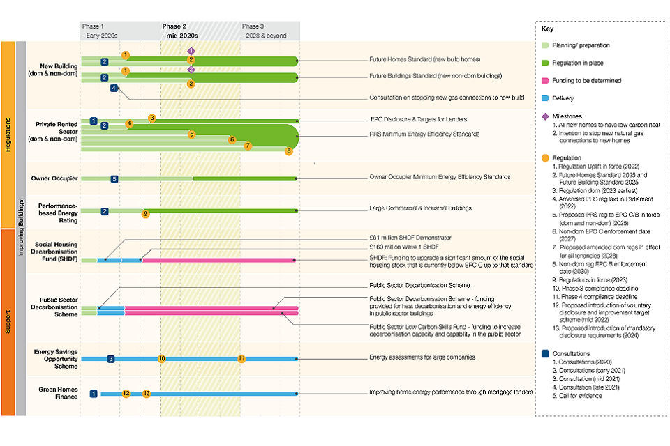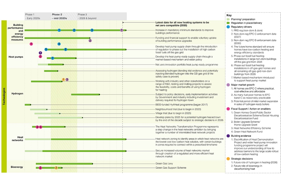 This Heat and Buildings Strategy fulfils the commitment made in Clean Growth: Transforming Heating [footnote 39] to produce a roadmap for heat policy, and acts as the UK’s Long Term Renovation Strategy. [footnote 40] As well as a roadmap, this document also takes a holistic approach to energy use in buildings, considering product and building efficiency as well as heat decarbonisation. This document builds on the Prime Minister’s Ten Point Plan [footnote 41] and the Energy White Paper [footnote 42] announced in 2020 to provide a clear direction of travel for the 2020s, demonstrating how we will meet our carbon targets, ensure we are on track for Net Zero and rapidly support jobs and levelling up. It also sets out how we are approaching the big strategic choices that need to be taken during this decade.