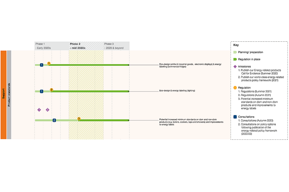 21. Launch a new world-class policy framework for energy-related products: We will continue to pursue and explore policies that increase use of energy efficient, smart and sustainable products and maximise their associated benefits, following our departure from the EU. We plan to launch our new Energy Related Products Policy Framework which will be published in due course and include illustrative proposals on a range of products including cookers, boilers (including consideration of hybrids), showers, taps and heat emitters. The introduction of this new framework will reduce consumer bills, reduce energy consumption, and reduce emissions by ensuring that when consumers invest in new products, they are buying products that have been made to high efficiency standards.