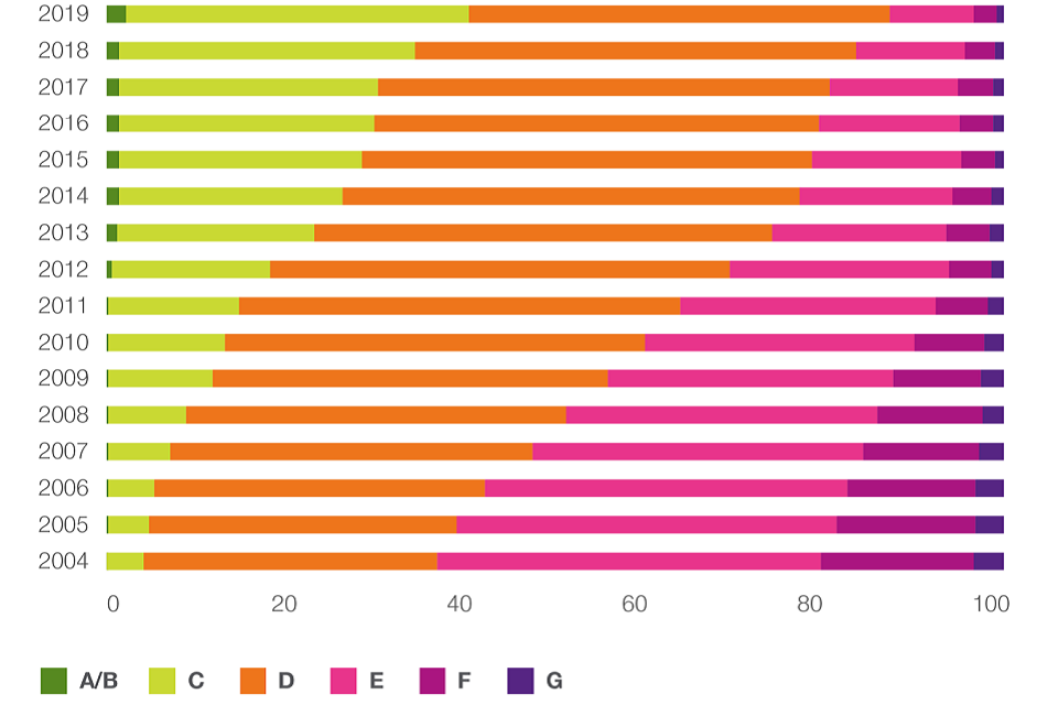 DLUHC Live tables on Energy Performance of Buildings Certificates, last updated 2021. ↩