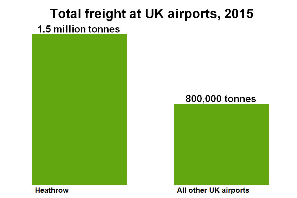 Heathrow carries more freight by tonnage than all the UK’s other airports combined (1.5 million tonnes in 2015). It also accounts for 31% of the UK’s non-EU trade by value in 2014.
