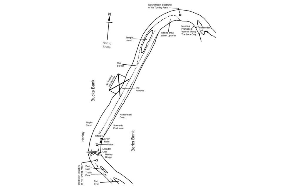 During these dates (whilst practice for Henley Royal Regatta and Henley Women’s Regatta is taking place) no boats, other than rowing racing boats, can navigate within the regatta course booms or crew warm up area.