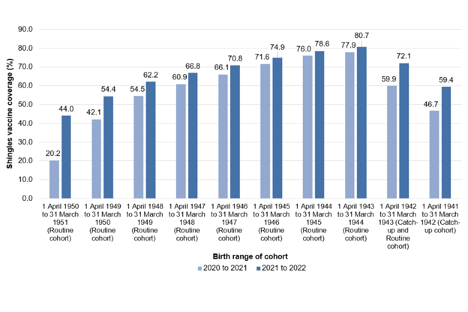 Shingles vaccine coverage (England): annual report of the financial year 2021 to 2022