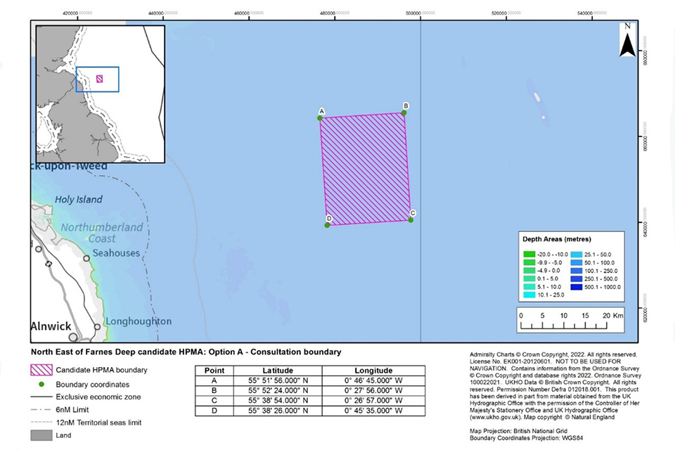 Figure 4 – North East of Farnes Deep candidate HPMA: This map shows Option A – the consultation boundary