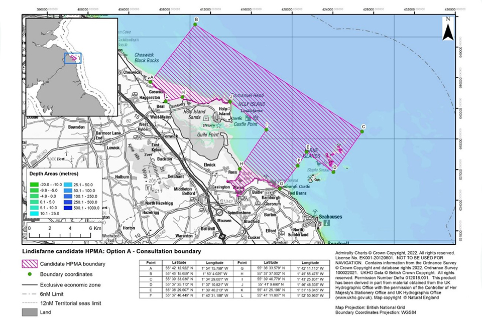 Figure 5 – Lindisfarne candidate HPMA: This map shows Option A – the consultation boundary
