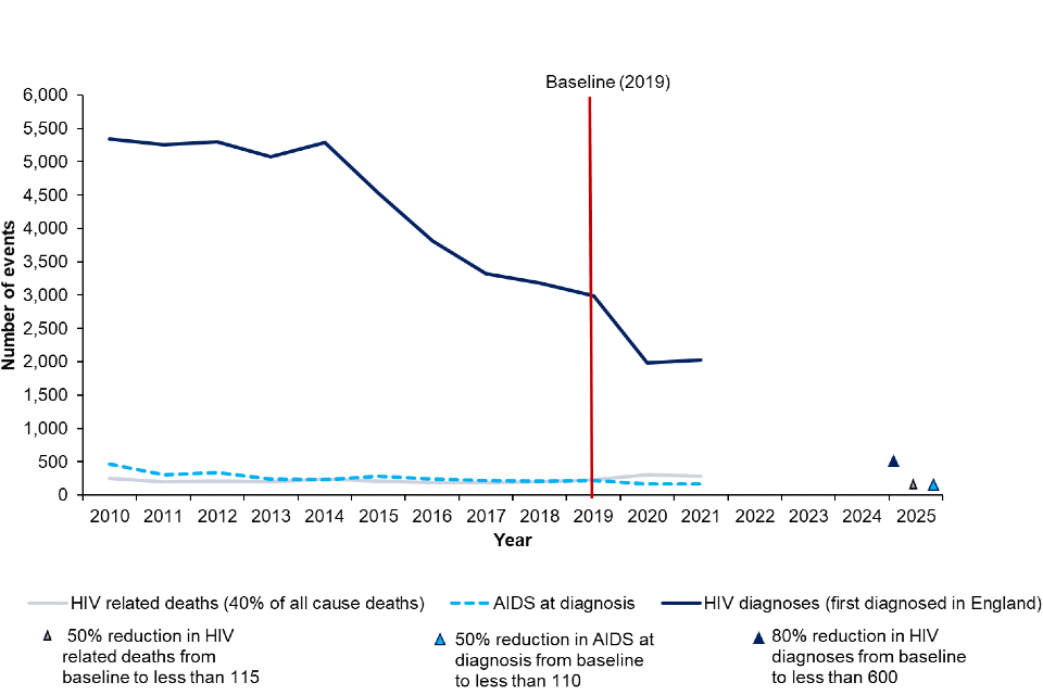 The interim ambitions of the England’s HIV Action Plan 2022 to 2025 (1) aimed to reduce the following between 2019 (baseline data for the HIV Action Plan) and 2025: