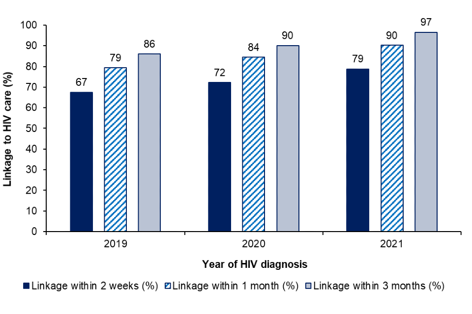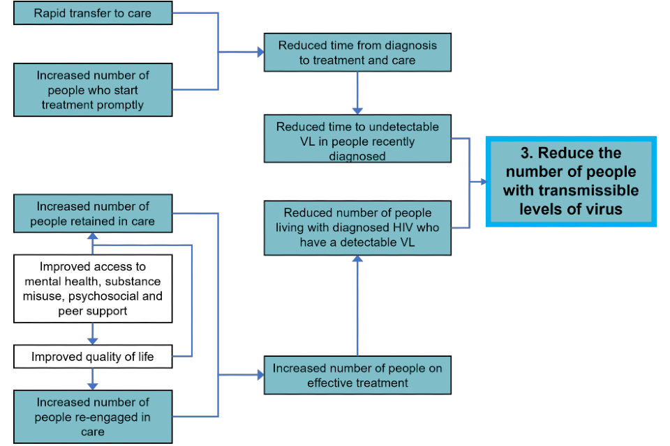 For people diagnosed with HIV, rapid linkage to care and treatment, and subsequent retention in care (and re-engagement in care where necessary) will reduce the number of people living with a detectable viral load, thereby improving health and reducing onward transmission.