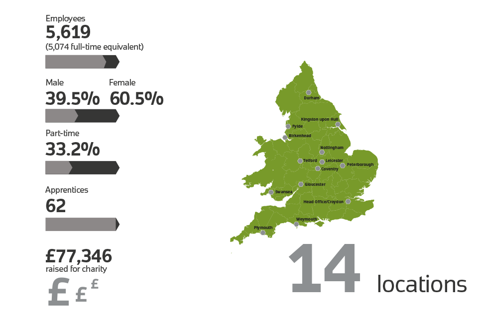 HM Land Registry has 5,619 employees (5,074 full-time equivalent)
