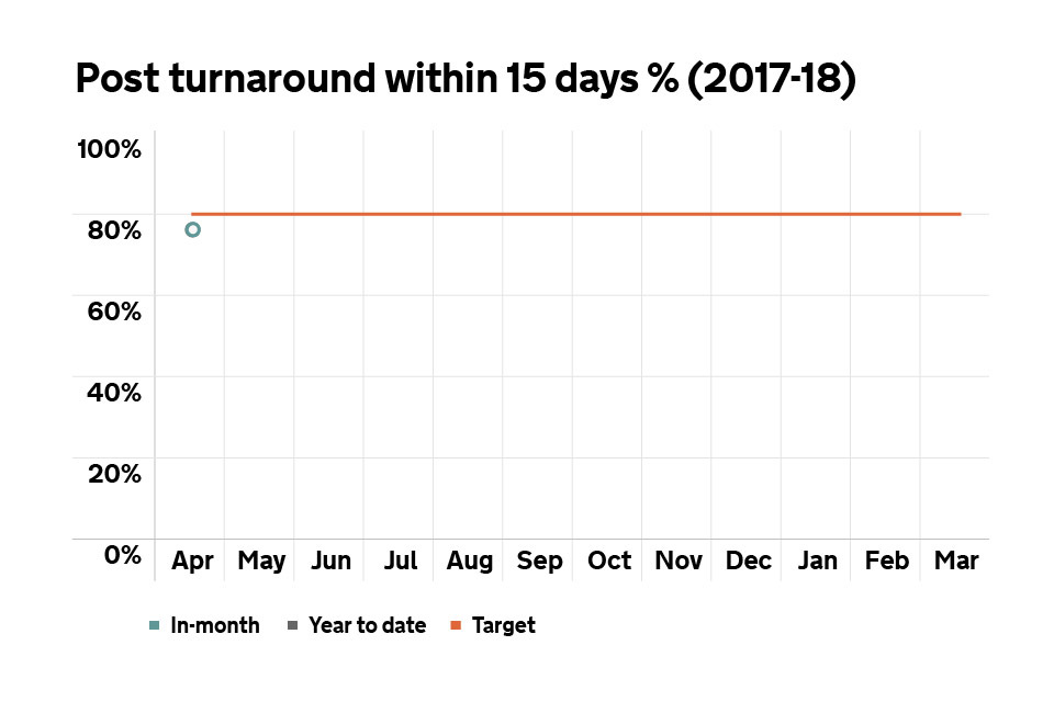 We aim to turn around at least 80% of post and complaints within 15 working days across the year.