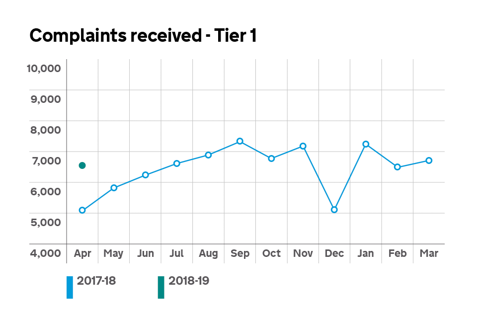 Graph showing the number of Tier 1 complaints received.