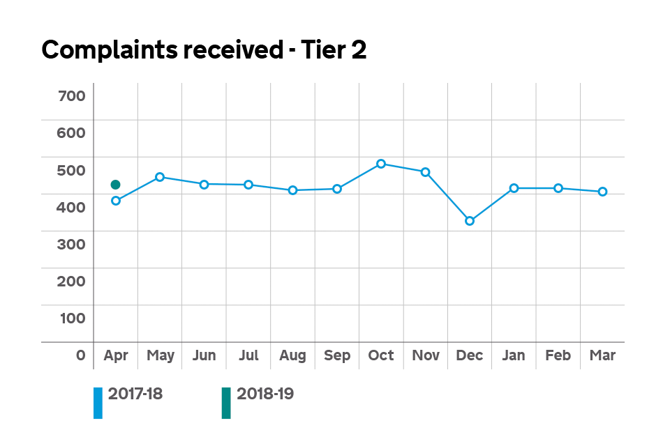 Graph showing the number of Tier 2 complaints received.