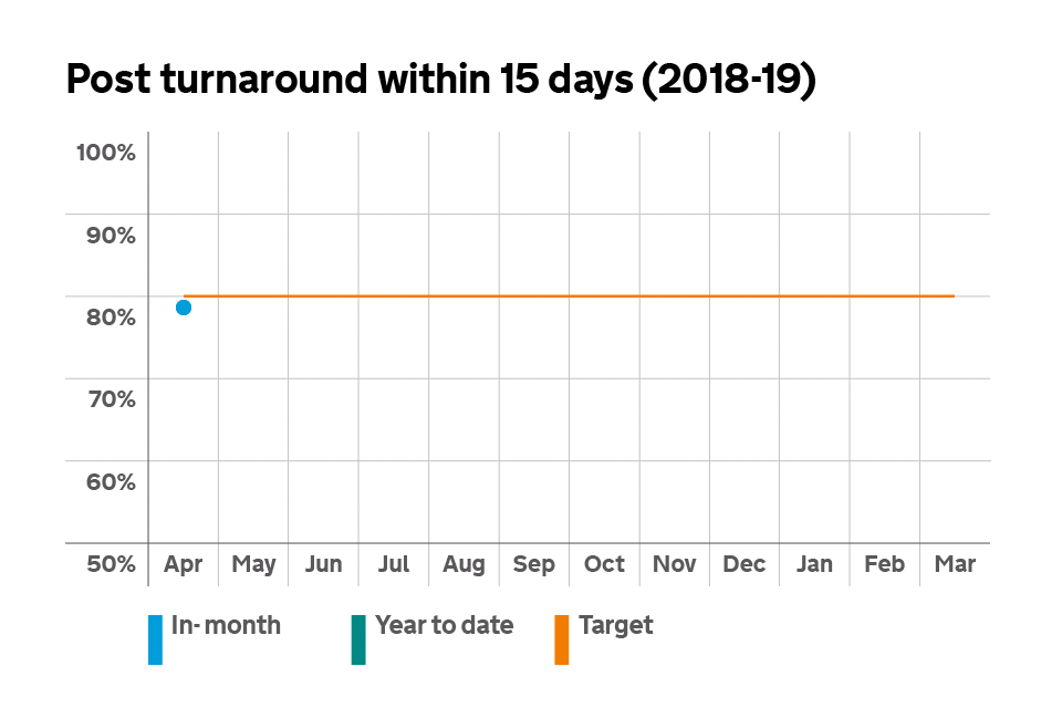Graph showing percentage of post handled within 15 working days.