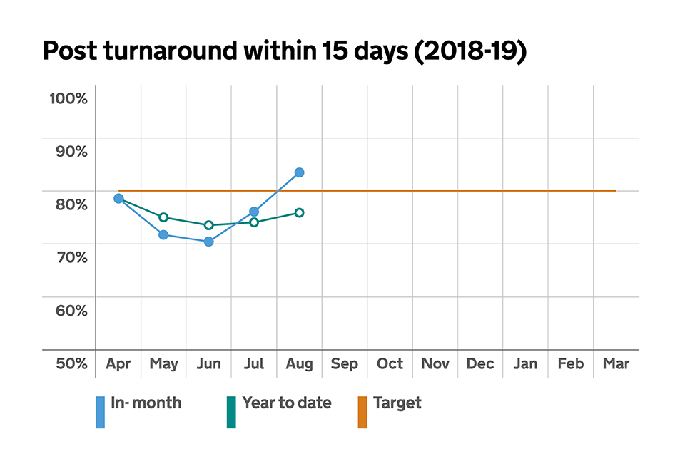 Our target for 2018 to 2019 is to turnaround 80% of post for the year within 15 days.