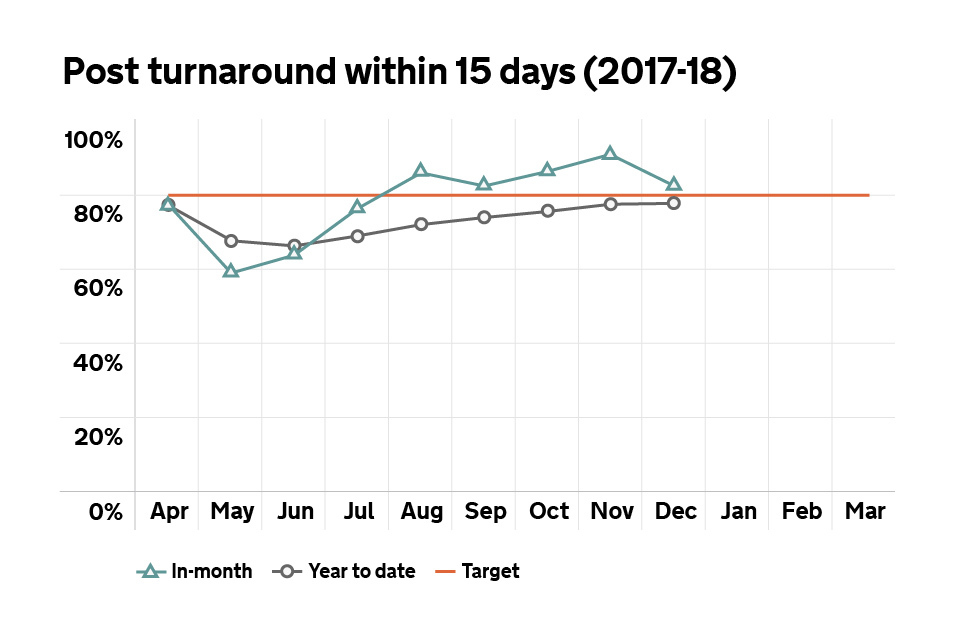 Graph showing percentage of post handled within 15 working days