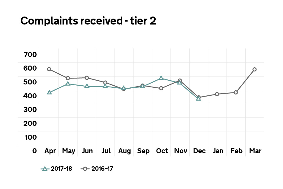 Graph showing the number of tier 2 complaints received