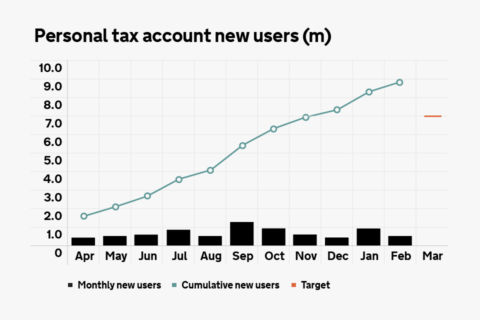 - Personal tax account performance measured from the launch of the personal tax account in December 2015