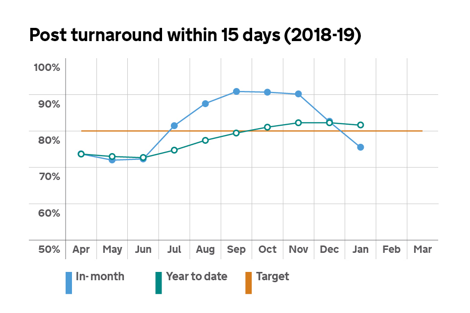 Our target for 2018 to 2019 is to turnaround 80% of post for the year within 15 days.