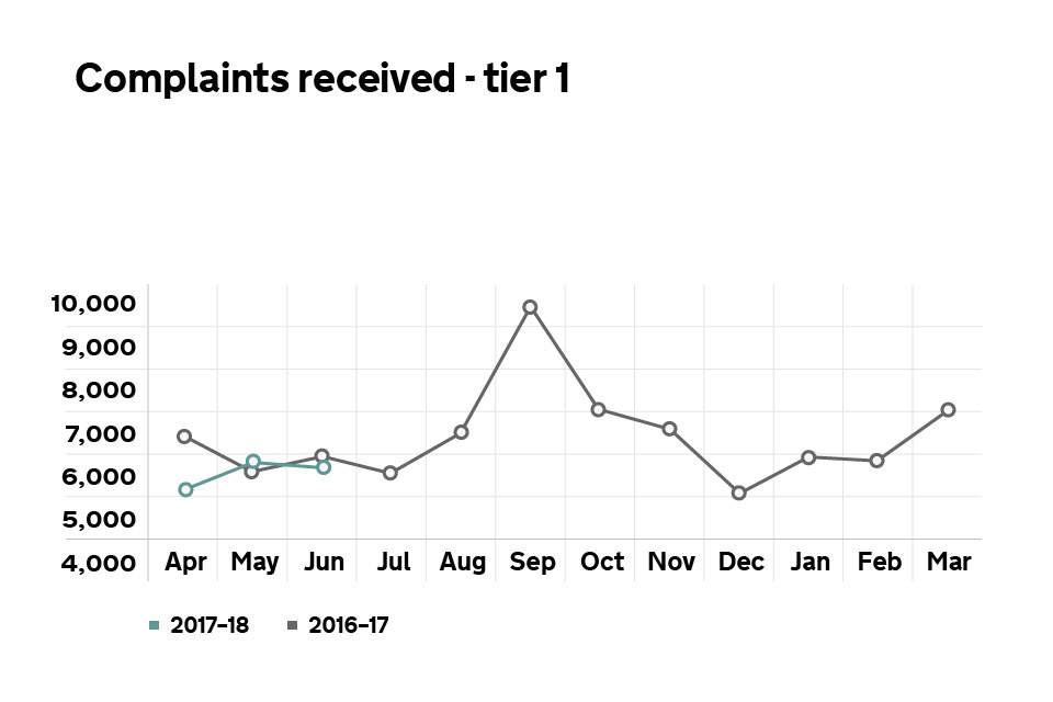 Graph showing the number of tier 1 complaints received.