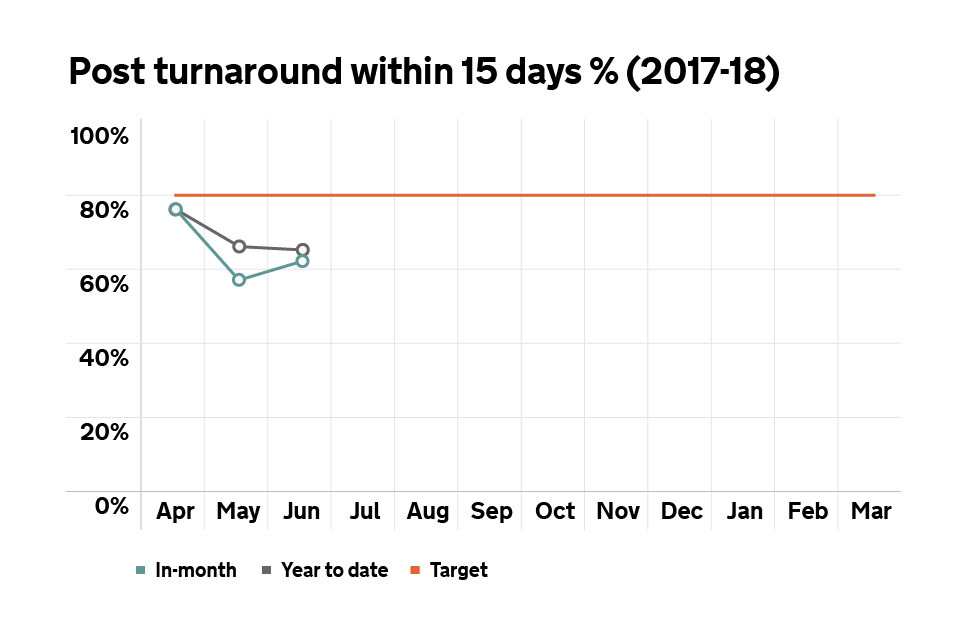 Graph showing percentage of post handled within 15 working days.