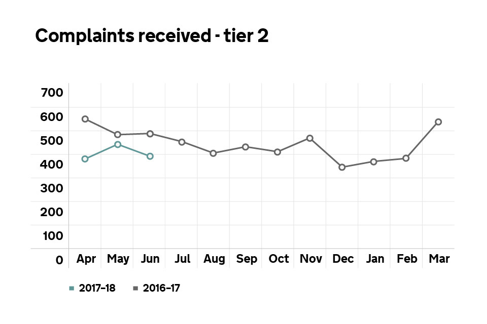 Graph showing the number of tier 2 complaints received.