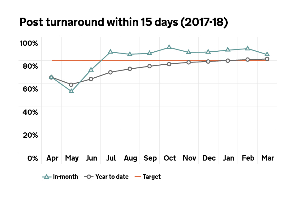 We aim to turn around at least 80% of post and complaints within 15 working days across the year.