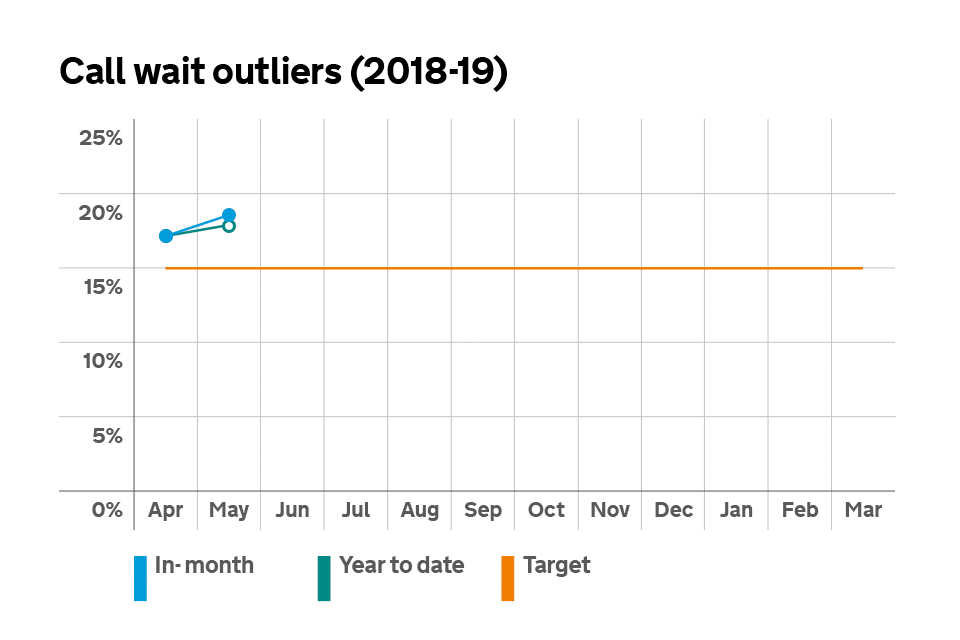 This month the percentage of customer calls that took more than 10 minutes to speak to an adviser: