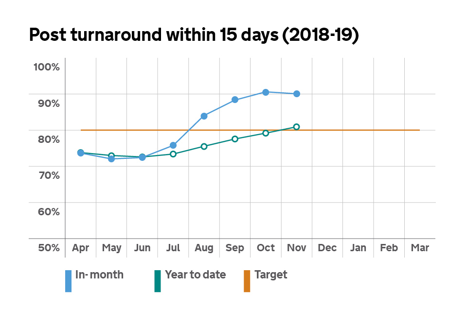 Our target for 2018 to 2019 is to turnaround 80% of post for the year within 15 days.