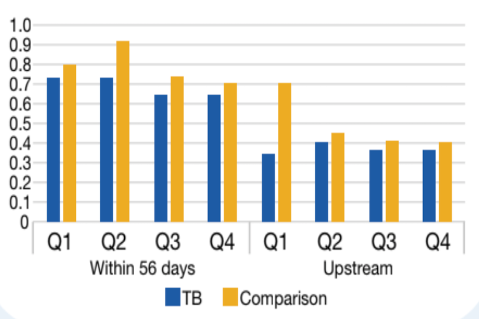 - Evaluation found a Trailblazer effect on rate of acceptances (13% lower in trailblazer areas) and on the rate of cases of prevention and relief (11% higher in trailblazer areas) in 2017/18 for ‘within 56 day areas’ trailblazer areas.