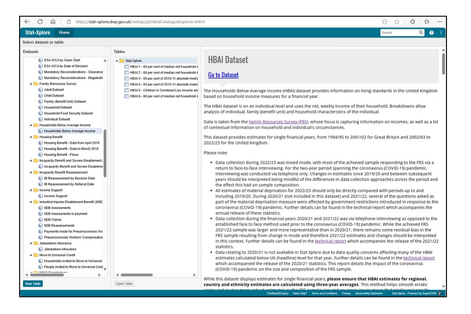 Benefits of Using the HBAI Stat-Xplore Dataset
