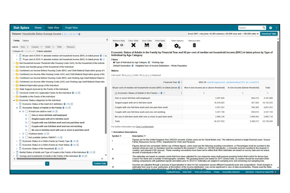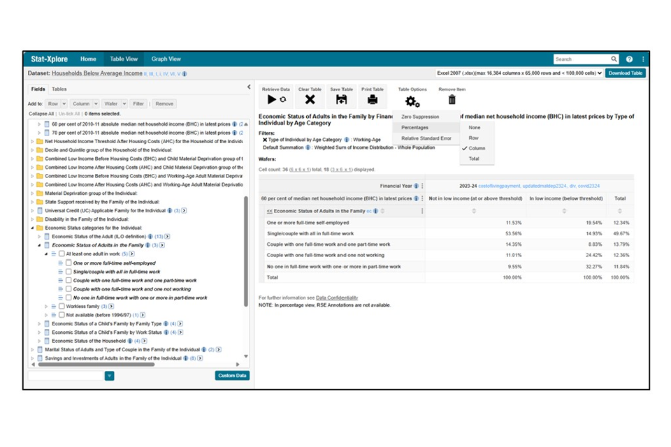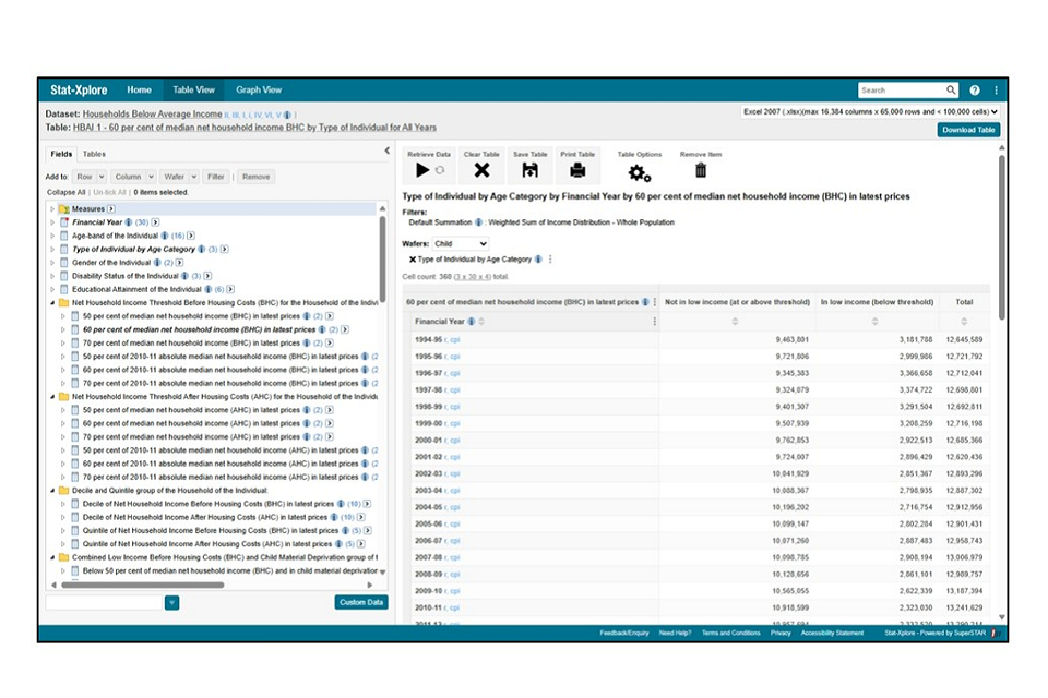 HBAI Stat-Xplore allows users to create their own analysis of these measures and breakdowns: