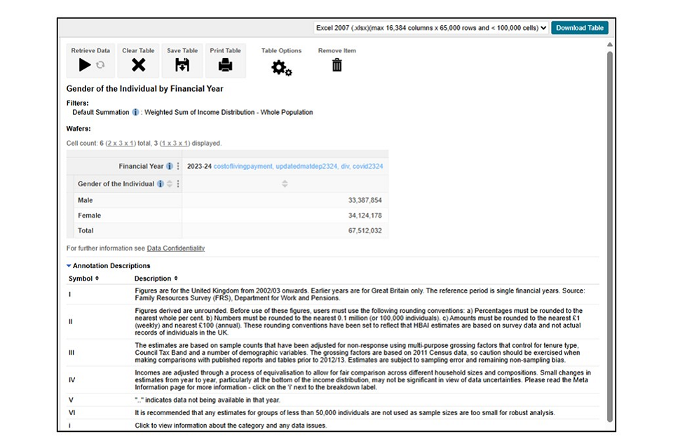 New user-defined analysis of HBAI data with a user-friendly Application Programming Interface (API) and quick export of tables/graphs to Excel/PDF.
