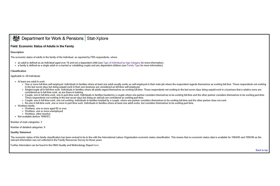 HBAI homepage: Main report, along with an extensive suite of tables of HBAI estimates and the HBAI Quality and Methodology Report detailing issues related to HBAI data and includes information on Other Relevant Statistics in Annex 2.