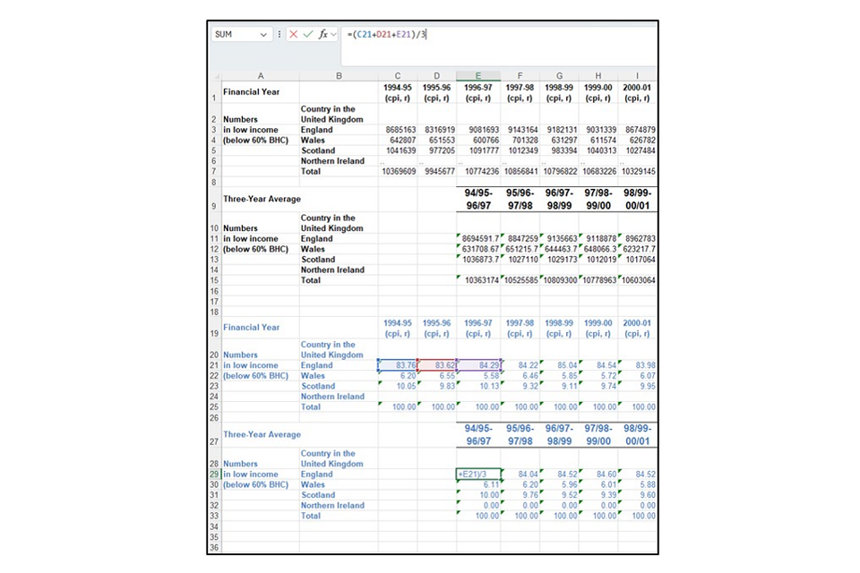 Figure 32 - Worked Example 2 Calculating a 3-Year Average for Percentages