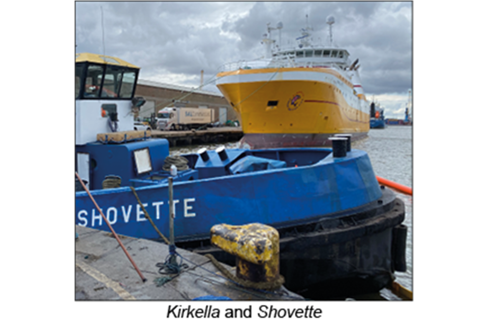 On 24 June 2022, the UK registered fishing vessel Kirkella lost control of its propulsion system while berthing and collided with the harbour tug Shovette in King George Dock, Hull, England. Kirkella’s bulbous bow breached Shovette’s hull and starboard fuel tank during the collision, causing the tug to partially sink and resulting in approximately 7,000 litres of marine diesel oil spilling into the dock. Kirkella was not damaged during the accident.