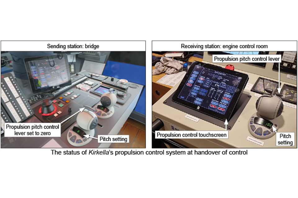 Robust shipboard practices are essential to maintain propulsion control during handover, regardless of whether system interlocks are fitted. Documented procedures should contain a requirement for the operator of the sending station and the receiving station to check that propulsion systems pitch settings are aligned at the time of transfer.