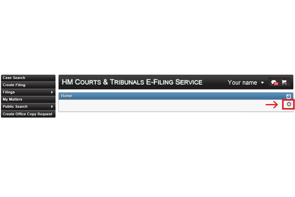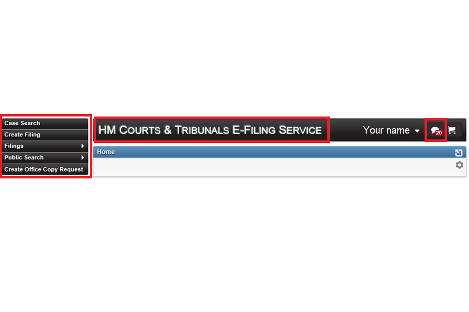You can get back to the dashboard from any other screen by clicking on the ‘HM Courts & Tribunals E-filing Service’ heading at the top of the screen.