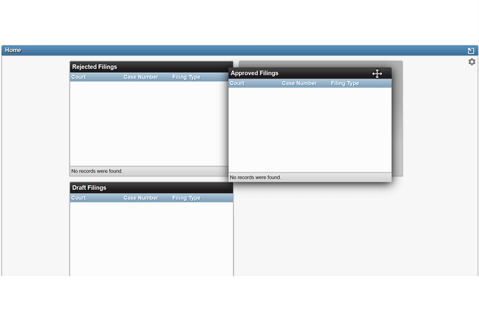 The widgets will appear on your dashboard. Updates to your filings will appear within the appropriate boxes.
