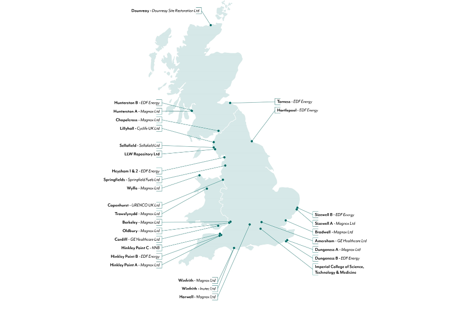 The map shows only civil nuclear sites and does not include any defence-related sites. ↩