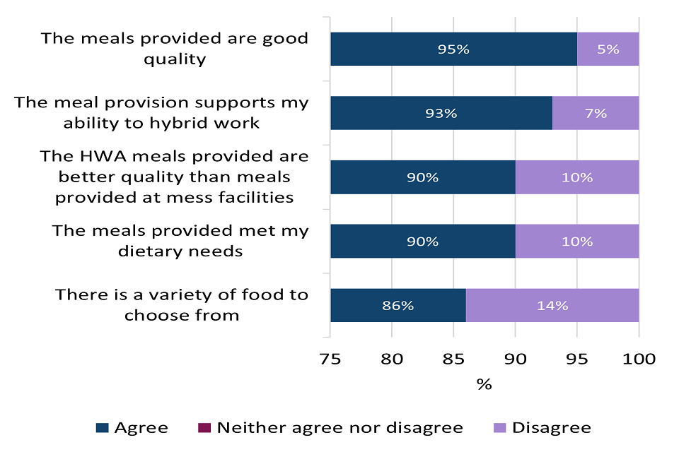 Most survey respondents (over 90%) agreed the meals provided at HWA met their dietary requirements and were good quality.