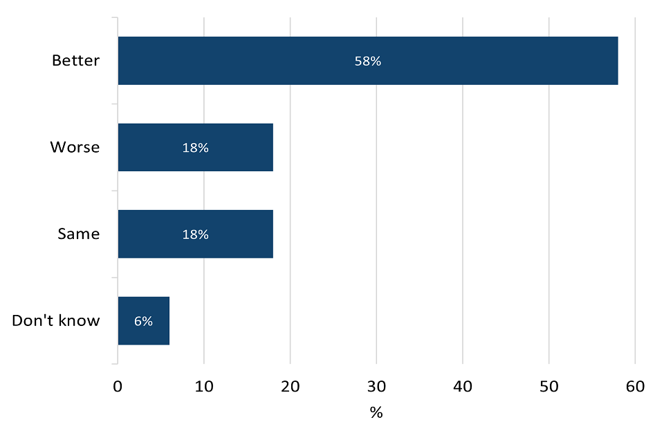 Thematic analysis was used for open-ended questions. Thematic analysis is aimed at systematically describing the meaning of qualitative data by assigning codes to the data, then identifying themes that emerge from the codes. An inductive approach was used for this research, meaning the data determined the themes which emerged. The open-ended responses were coded by a Government Social Researcher. The codes were then grouped into themes. Quotes used in this report have been provided from the responses. They have only been edited for grammatical errors, clarity or brevity.
